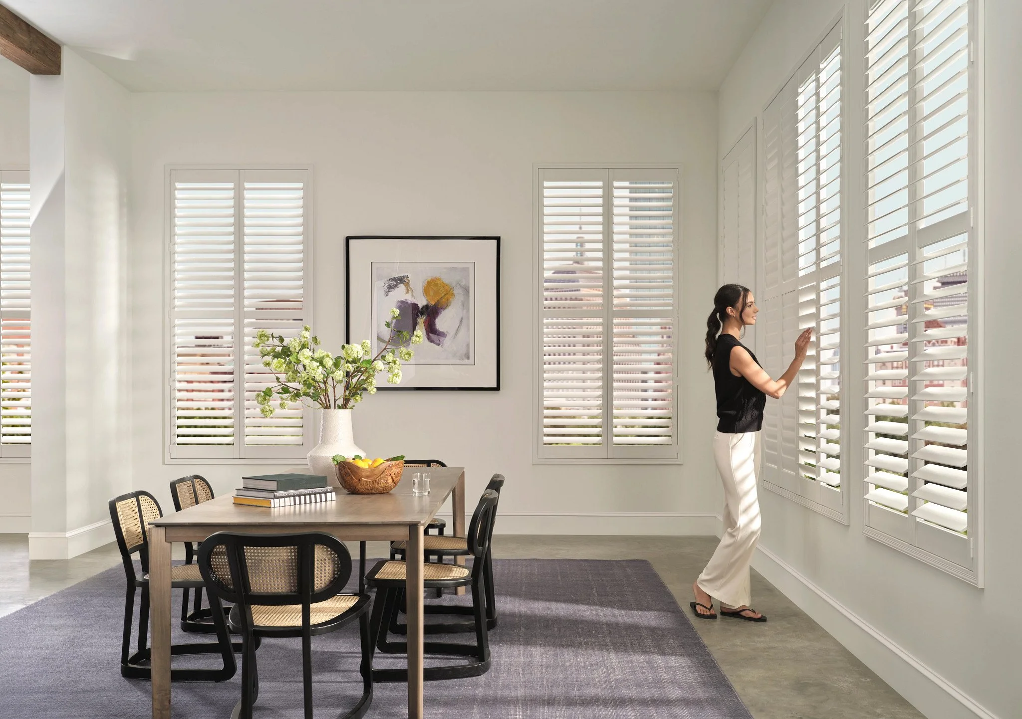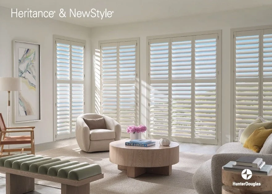 At Mountain Blind Man, we’re proud to offer Hunter Douglas Shutters—a timeless window treatment that combines lasting craftsmanship with refined style. Available in genuine hardwood, composite, and durable Polysatin™ materials, these shutters are designed to withstand daily wear while adding architectural interest to any room. With their wide louvers and clean lines, Hunter Douglas shutters provide excellent light control, enhanced privacy, and a classic look that complements both traditional and contemporary homes.