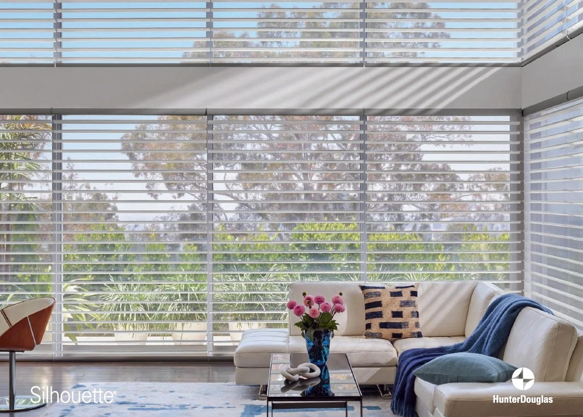 At Mountain Blind Man, we carry Hunter Douglas Silhouette® Shades, known for their graceful, floating fabric vanes suspended between sheer panels. Perfect for softening harsh Colorado or Arizona sunlight, Silhouettes beautifully filter light while preserving your view and offering day-to-night privacy—bringing a calm, airy feel to any room. Available in both manual and motorized operating systems.