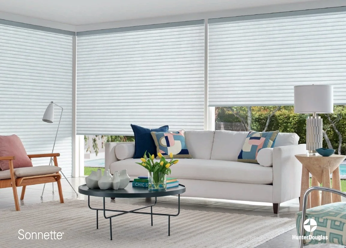 At Mountain Blind Man, we’re proud to offer Hunter Douglas Sonnette® Cellular Roller Shades—a smart fusion of the energy efficiency of cellular shades with the clean, modern aesthetic of a roller shade. The unique cellular construction helps insulate your windows, offering enhanced comfort and potential energy savings throughout the year. Soft, curved fabrics gently diffuse light to create a warm, glowing ambiance in any room. Available in both manual and motorized operating systems.