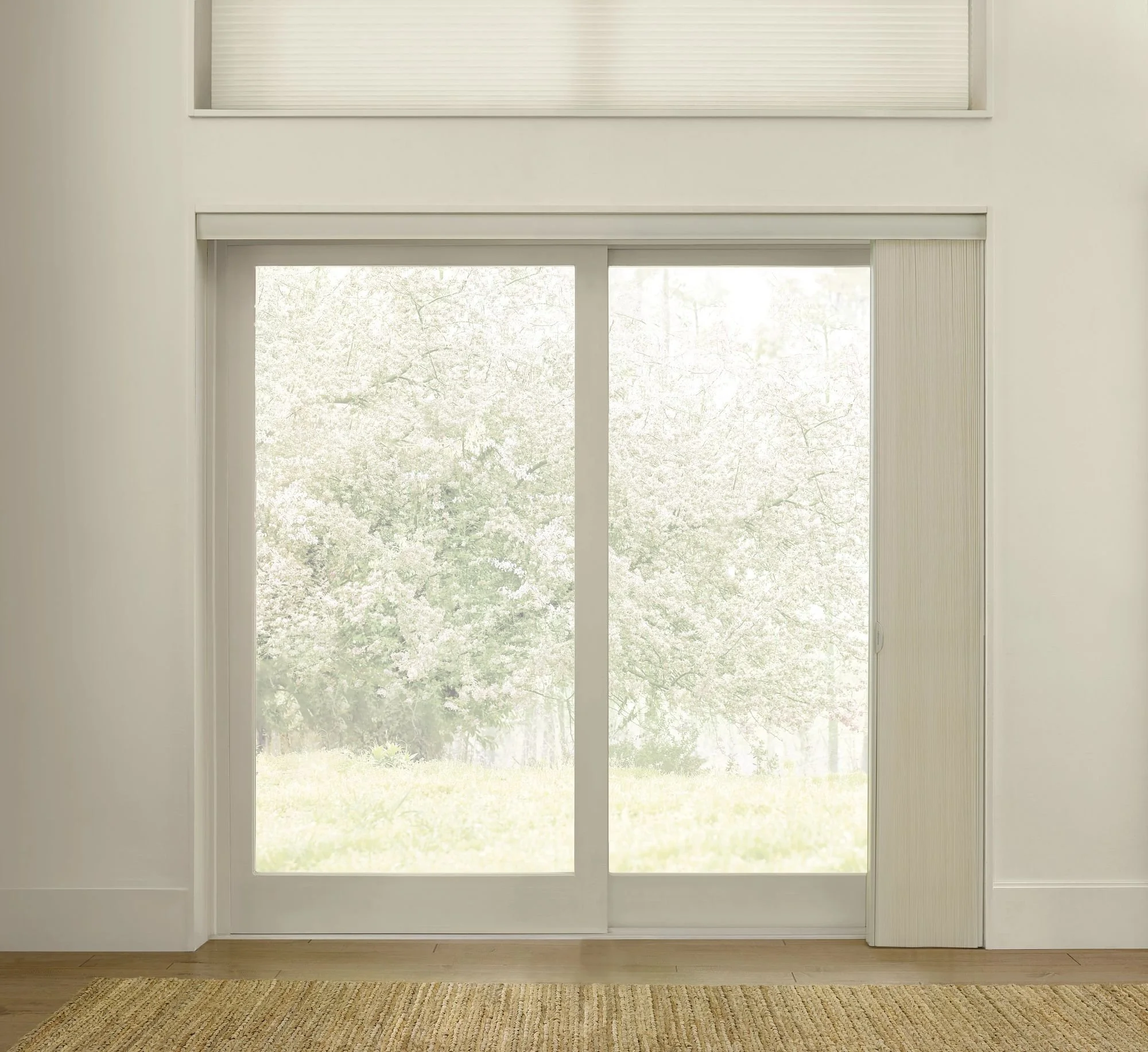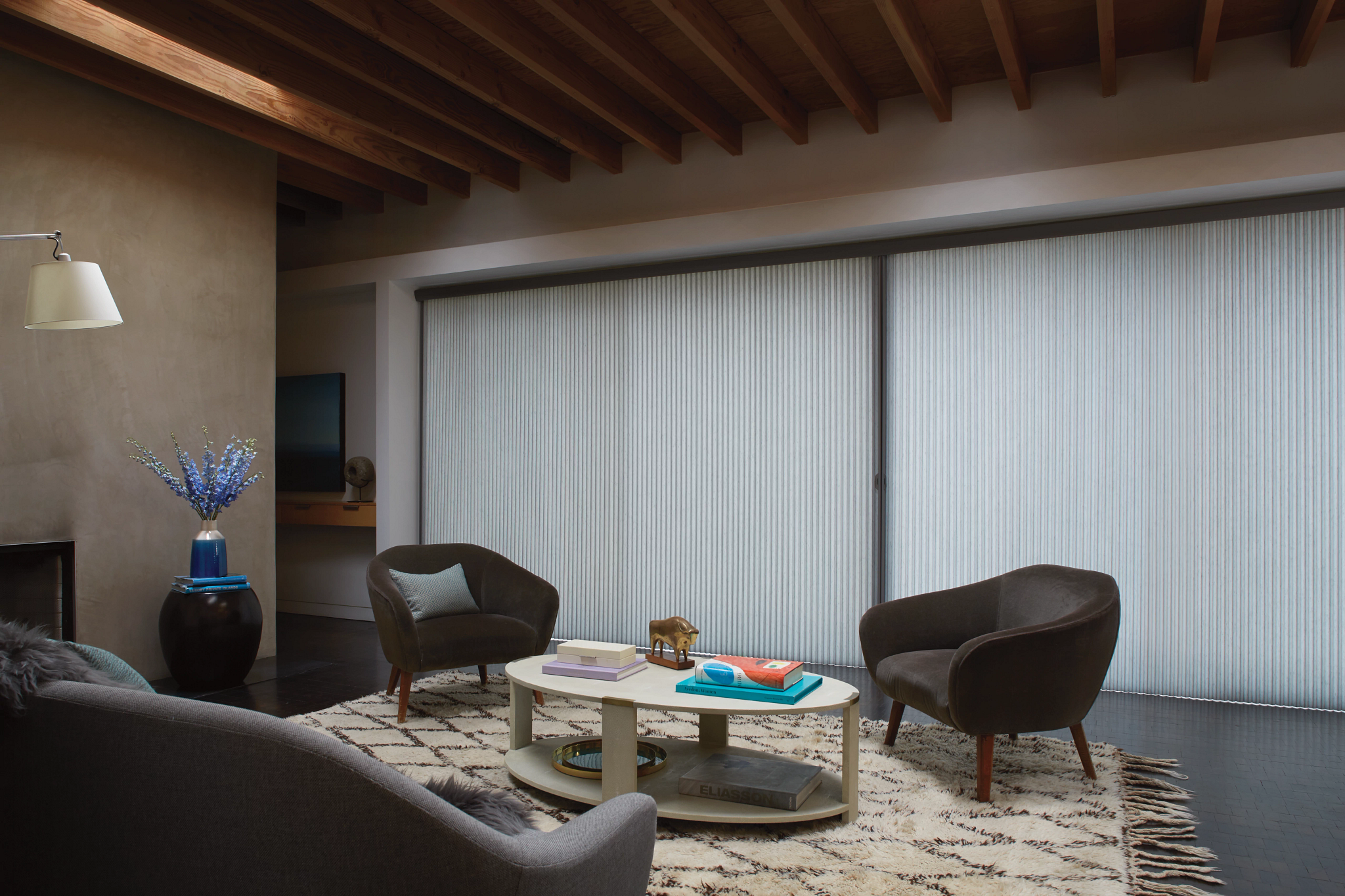 At Mountain Blind Man, we’re proud to offer Hunter Douglas Vertiglide®—a smart, stylish solution for large windows and sliding glass doors. Featuring the same fabrics as our popular Duette® and Applause® Honeycomb Shades, Vertiglide® operates side-to-side instead of up and down, making it ideal for wide openings. With its energy-efficient design, smooth operation, and sleek, modern look, Vertiglide® gives you flexible light control and privacy without sacrificing style or convenience. Available in both manual and motorized operating systems.